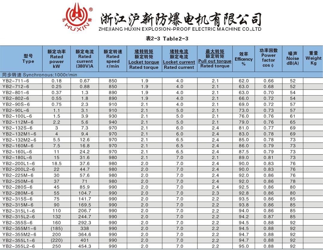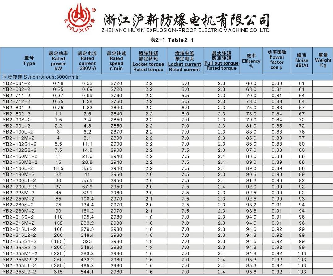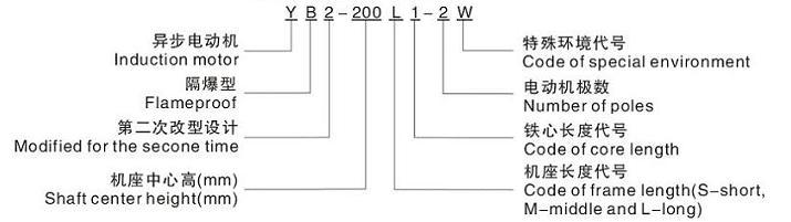 | YB2系列隔爆型三相异步电动机(机座号:63-315,极数:2-8极,功率:0.12kW-200kW) |